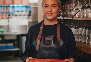 Din mad er klar til afhentning, frisk og varm, når du ankommer.